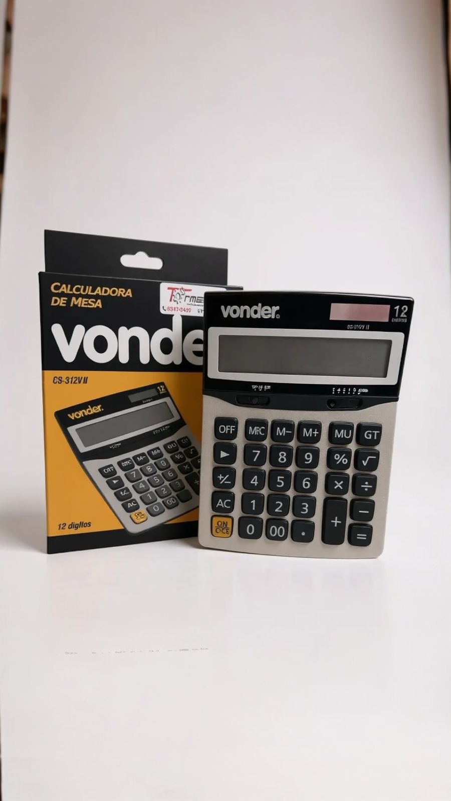 A Calculadora de Mesa Vonder CS 312V II é um modelo popular de 12 dígitos, ideal para uso geral em escritórios e finanças, destacando-se por seu design prático com célula solar (não precisa de pilhas em boa luz), visor amplo, teclas confortáveis, funções de memória e corpo na cor prata com fundo preto, oferecendo bom custo-benefício e durabilidade da marca Vonder.